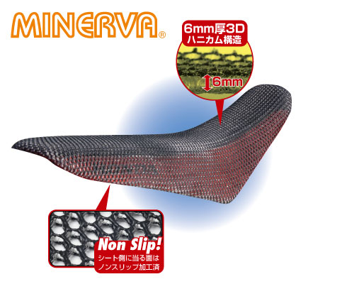 夏だけでなく一年中快適に過ごせるミネルバシートカバー。スタイリッシュにシートと一体化させたいというご要望から、シートをフルカバーできるようシート単体でリリース。メッシュ素材なので加工性にもすぐれ、ピッタリとベースシート形状におさまります。