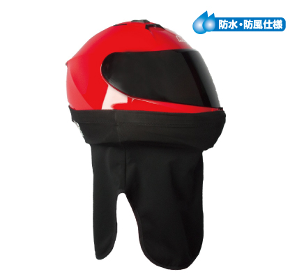 滑り止め加工したTOP部分をヘルメット下部外側に取り付けるとぴったり密着し、雨風をしっかりブロック。煩わしい首・胸への雨風の侵入をパーフェクトに防ぎます。ヘルメットに付けたままかぶることも、先にヘルメットチューブに頭を通してからヘルメットをかぶり装着するのも自在。