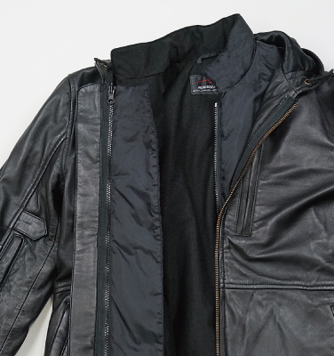 シープスキンはきめが細かく保湿性の高いしなやかな風合いで、カジュアルなパーカースタイルに最適な素材です。 気軽に羽織れる気楽さはデイリーユースで大活躍。 アクシデントに備え、胸、肩、肘、脊椎パッドをフル装備し安全安心。 開閉量調整が可能なアームベンチレーション、バックベンチレーションを装備し、着用時の温度管理が可能で快適です。牛革に比べ軽量なのも魅力のひとつで、Lサイズでナント1,400g、パッドを込みでも1,900gと一日着っぱなしでも快適に過ごせます。 また、多様なオプションインナーをライニングできるオールシーズン仕様のパーカーは、寒い時期にもフレキシブルに対応。 見た目にそぐわぬ歴としたライディングレザーパーカーです。