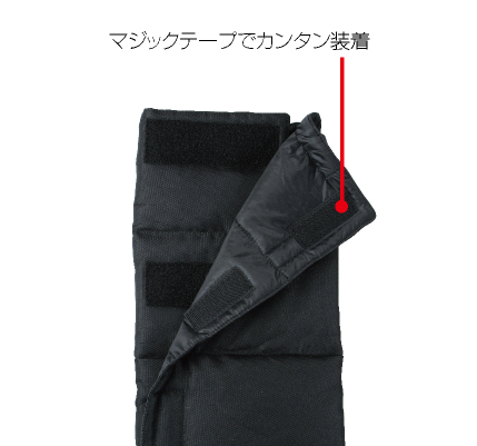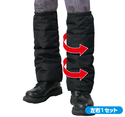 巻きつけタイプなのでライディングシューズ、ブーツを脱がずに脱着が可能。見た目以上の防寒力を発揮します。収納ケース付きで携帯もらくらく。ショートディスタンスでの使用にオススメです。携帯に便利な収納袋付き。